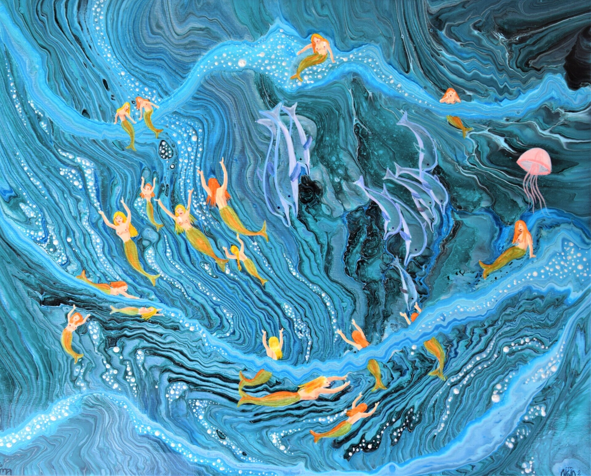 MERMAID´S DANCE - Acryl auf Holz - 40x50 cm - glänzend